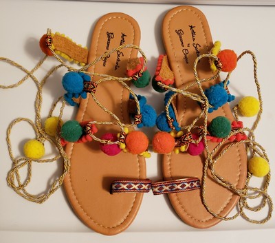 Antica Sartoria By Giacomo Cinque Pom Pom Lace Up Sandals Boho Festival Sz 41 10 Ebay